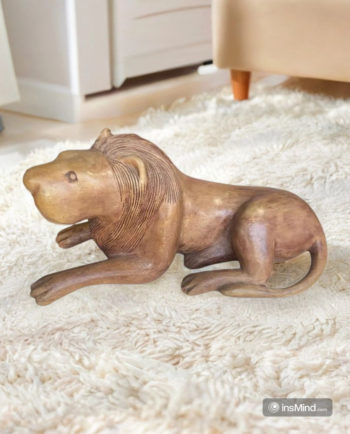 Leão Entalhado em Madeira